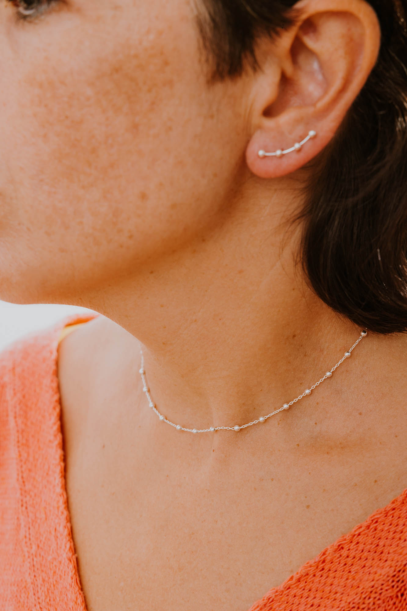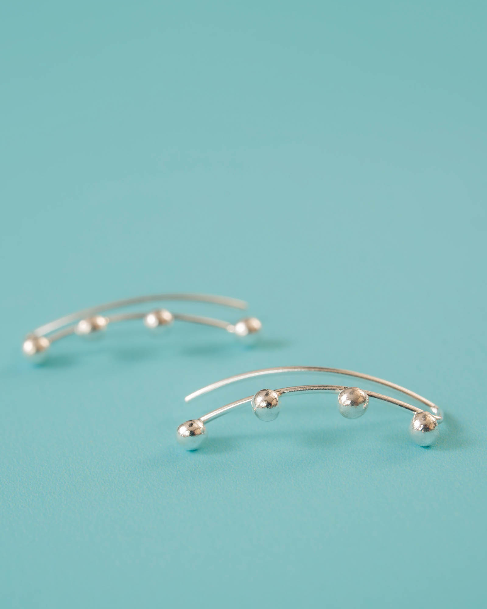 Pendiente trepador en plata de ley 925 con cuatro bolitas intercaladas con un diseño minimalista pensado para quienes aprecian los pequeños detalles que hacen la diferencia.