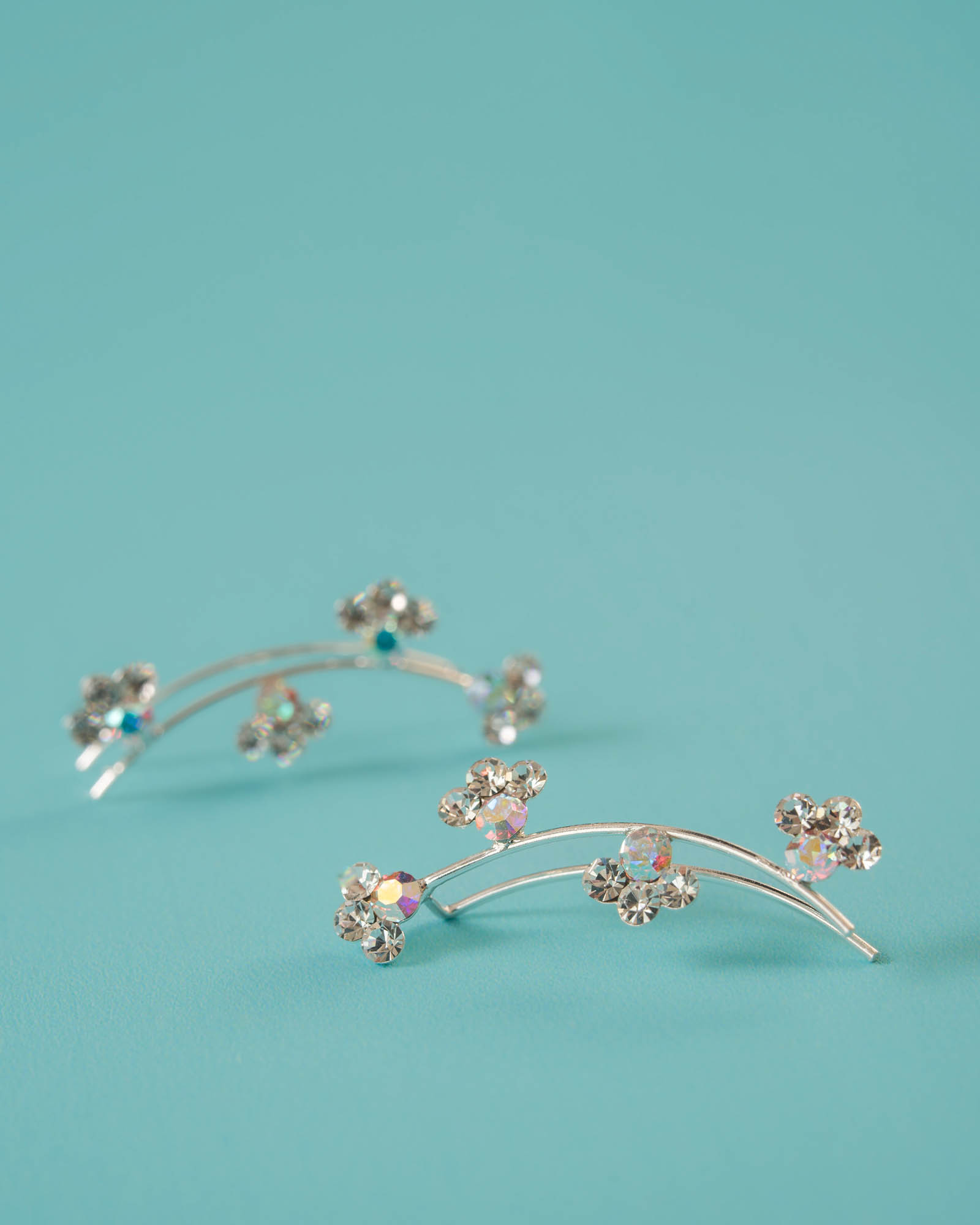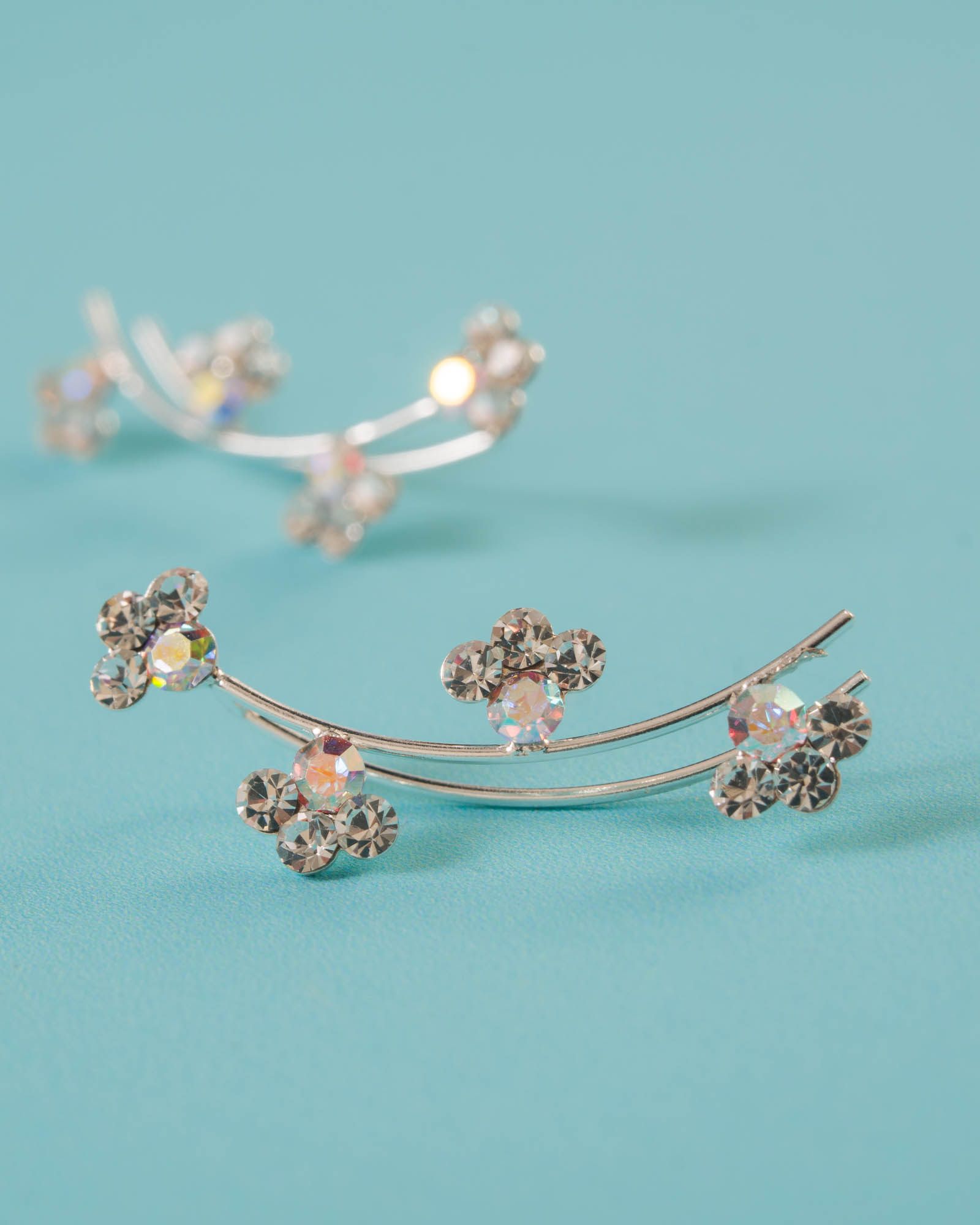 Pendiente de plata de ley 925 tipo trepadora flores shine