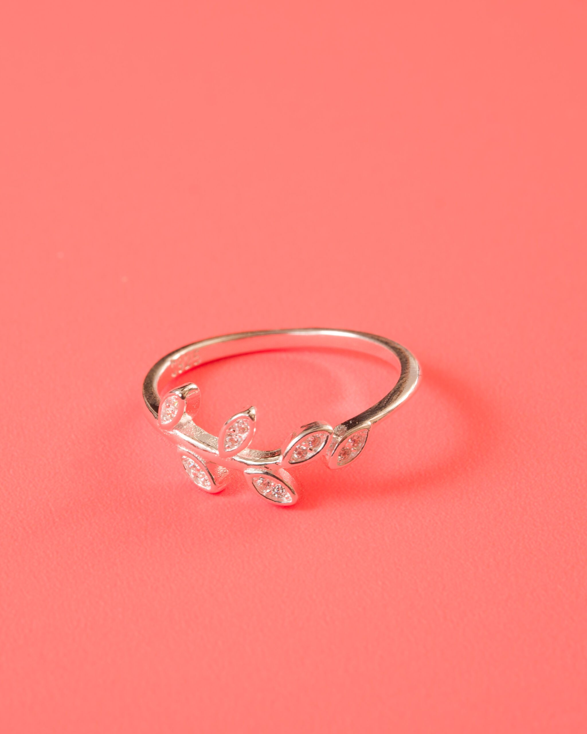 Anillo en plata de ley 925 hoja y circonitas
