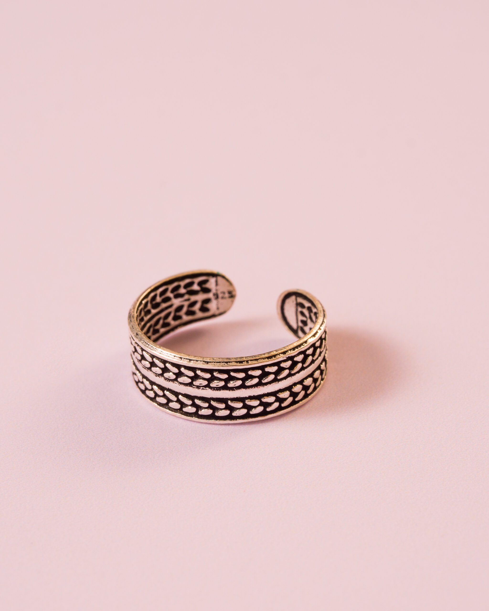Anillo midi en plata de ley 925 tonos ennegrecidos con un diseño de dos cenefas que le dan un toque moderno y original. Perfecto para usar en falange o dedo medio así como los deditos de los pies y darle así un plus único a tu look.