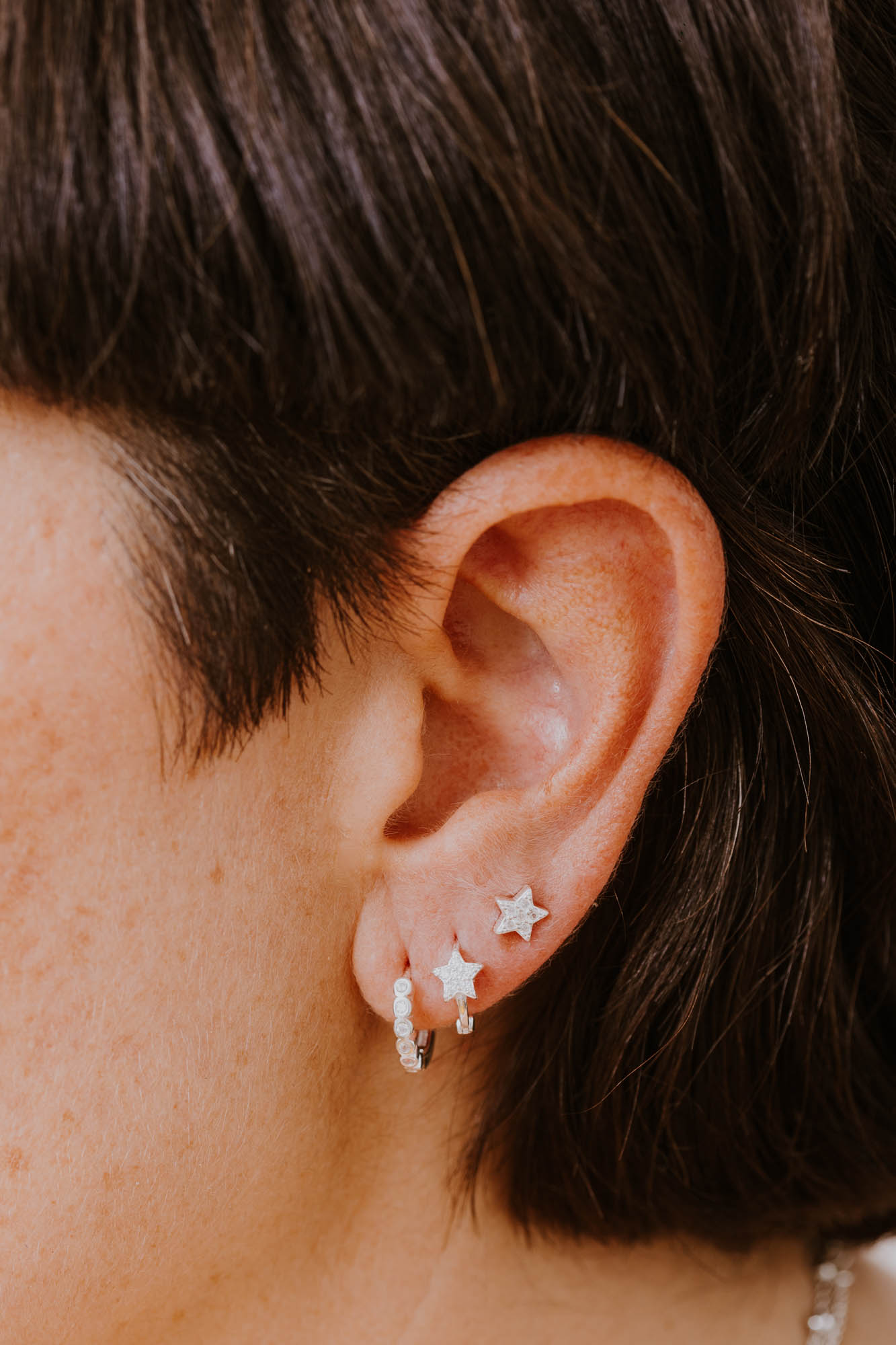 Un aro pensado para quienes aman los detalles que hablan sin necesidad de palabras. Hecho en plata de ley 925, lleva en su interior una delicada estrella adornada con circonitas blancas, que brillan con la sutileza de la luz de la luna. Es una joya que transmite calma y elegancia, perfecta para acompañarte en tu día a día o para darle un toque especial a esos momentos que quieres recordar. Su diseño es versátil: puedes llevarlo en el primer, segundo o tercer agujerito, y siempre se verá delicado y luminoso. El cierre es fácil y seguro, pensado para que disfrutes de la comodidad sin renunciar al estilo. Una pieza ligera, atemporal y llena de significado, que se convertirá en tu compañera de todos los días. Te encantará porque: