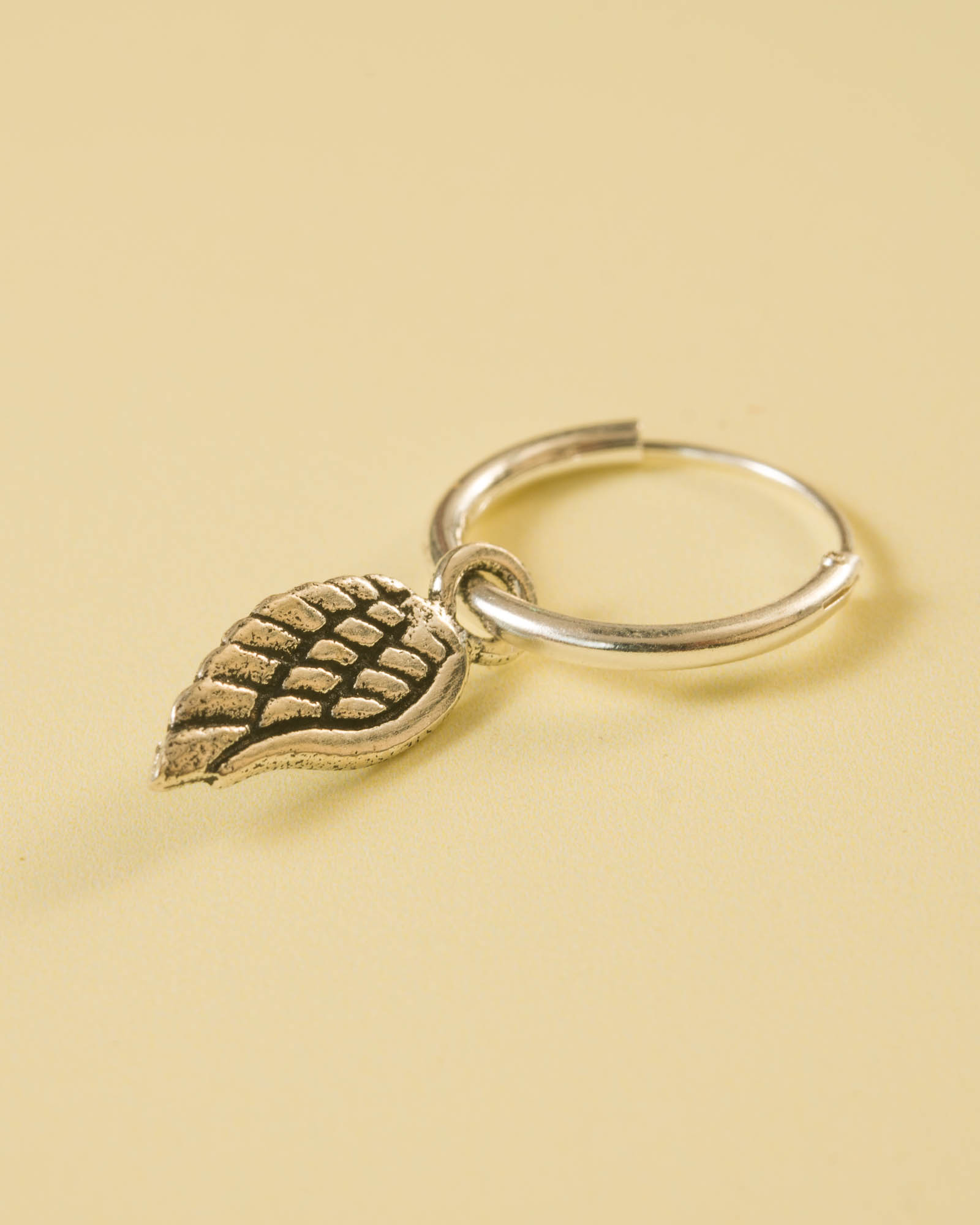 El arito mini individual en plata de ley (12 mm) con colgante de alita es una joya que simboliza libertad, protección y conexión con la esencia más pura de uno mismo. La alita, delicada y ligera, representa guía, cuidado y la posibilidad de elevarse por encima de cualquier desafío, recordándonos que siempre hay luz y esperanza en cada paso. Fabricado en plata de ley 925, este arito combina elegancia y resistencia en un diseño pequeño, cómodo y versátil. Su tamaño de 12 mm lo hace perfecto para usar solo en un estilo minimalista, o combinado con otros aritos para un look personal y lleno de significado. Llévalo como un amuleto diario que inspire confianza y serenidad, o como un detalle que celebre la belleza de lo sutil y la fuerza de los pequeños símbolos. Esta pieza es más que un accesorio: es un recordatorio de que la libertad, la protección y la luz interior pueden acompañarte siempre.