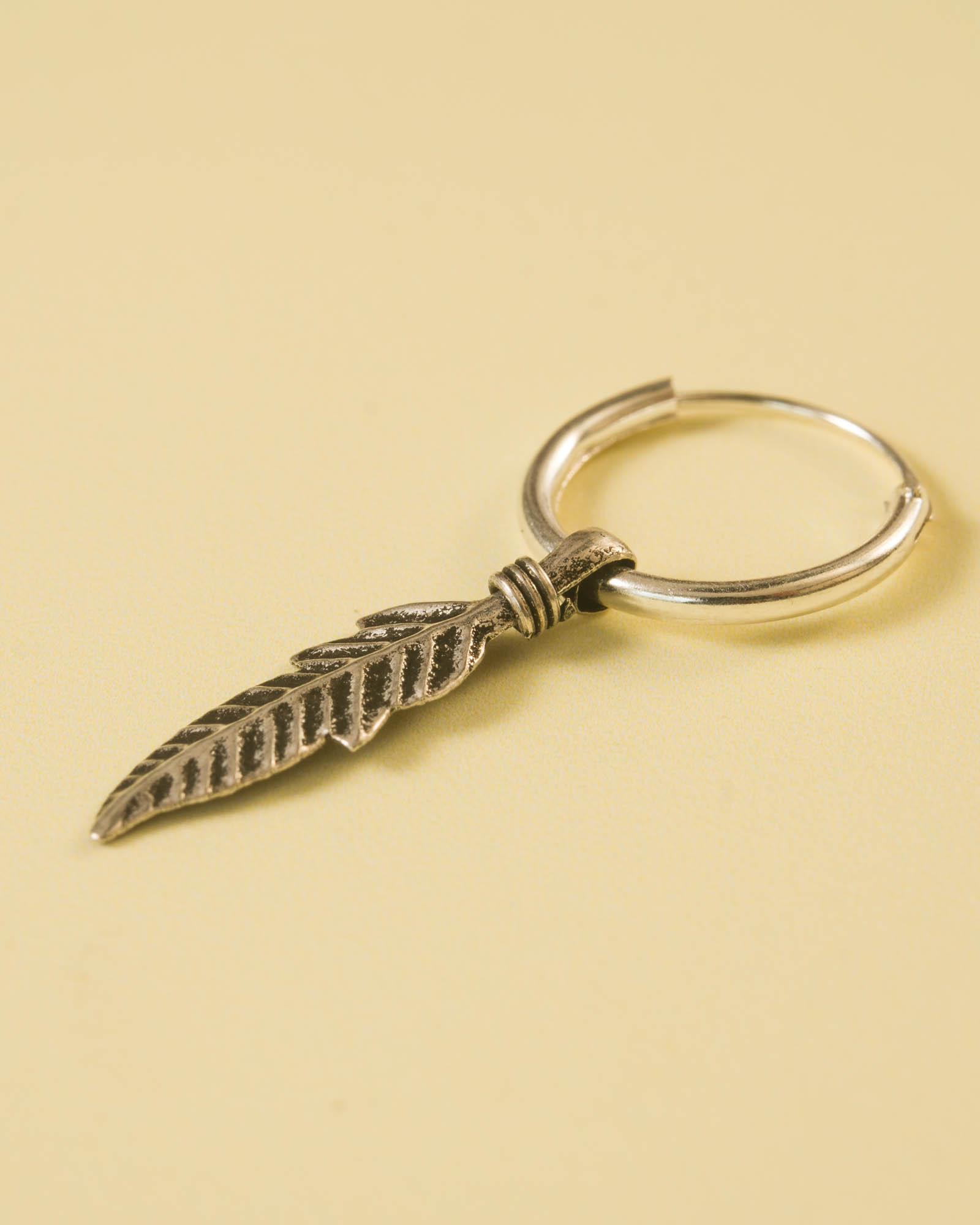 Arito mini individual en plata de ley (12 mm) con pluma colgando ennegrecida. Un diseño ligero y bohemio que simboliza libertad y estilo propio. Ideal para cualquier agujerito. Comodísimo e ideal para tu día a día.