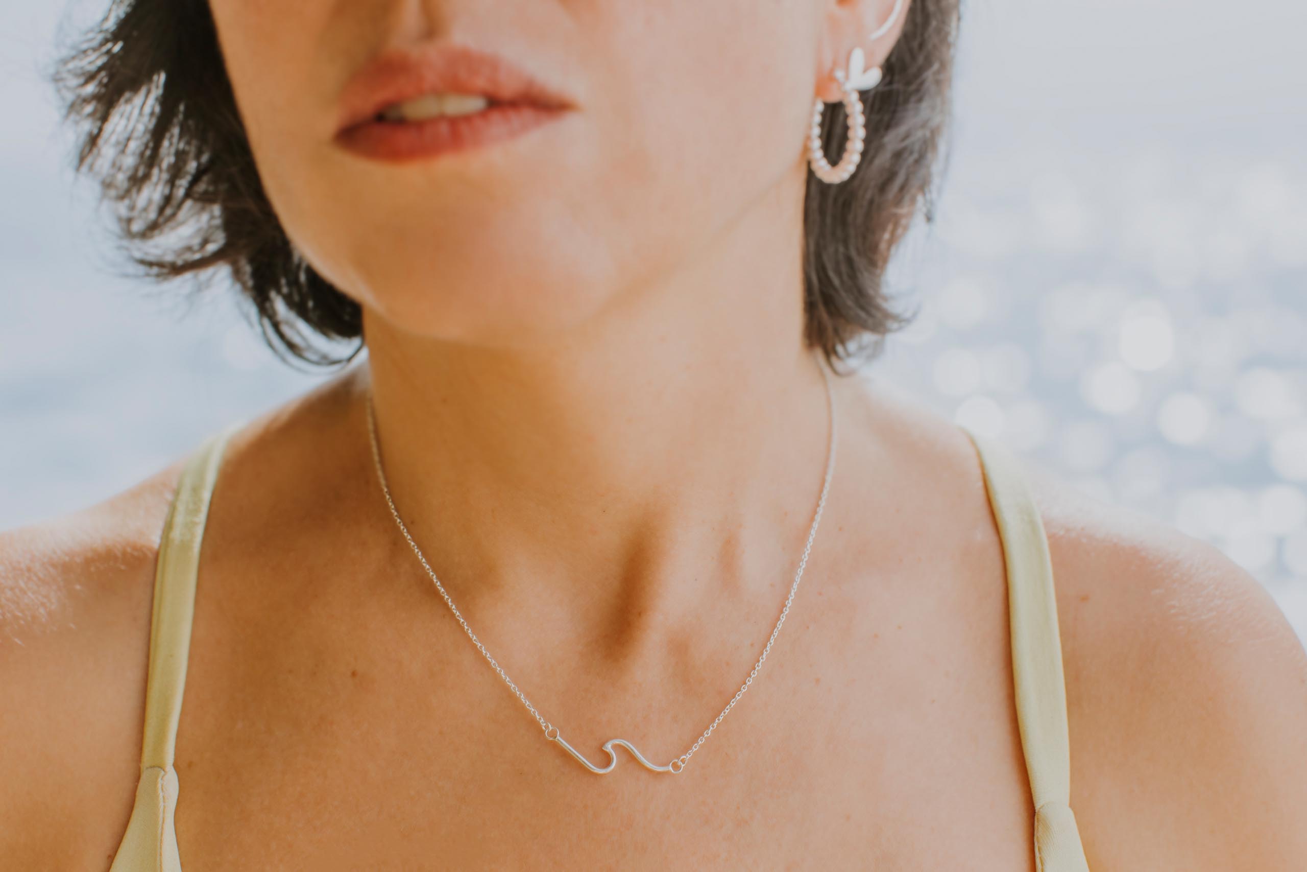 Cadena en plata de ley 925 con una ola muy simple en su centro, una joya delicada y significativa que captura la esencia del movimiento, la libertad y la serenidad. Esta pieza se convierte en un recordatorio sutil de la belleza de lo simple y lo natural.