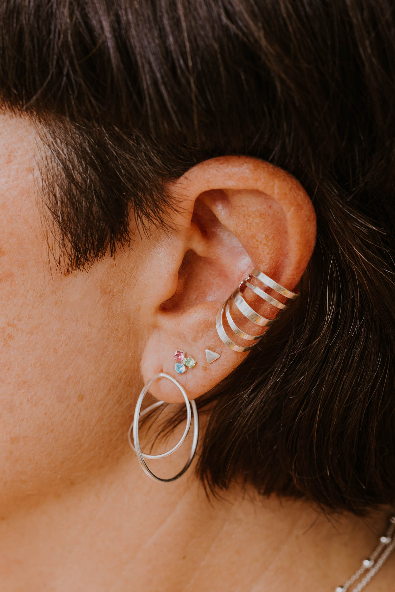 Hecho en plata de ley 925, estos aros combinan durabilidad con estética refinada, logrando un equilibrio perfecto entre simplicidad y presencia. Úsalo solo para un estilo moderno y depurado, o combínalo con otros aritos para crear un conjunto atrevido y lleno de personalidad.