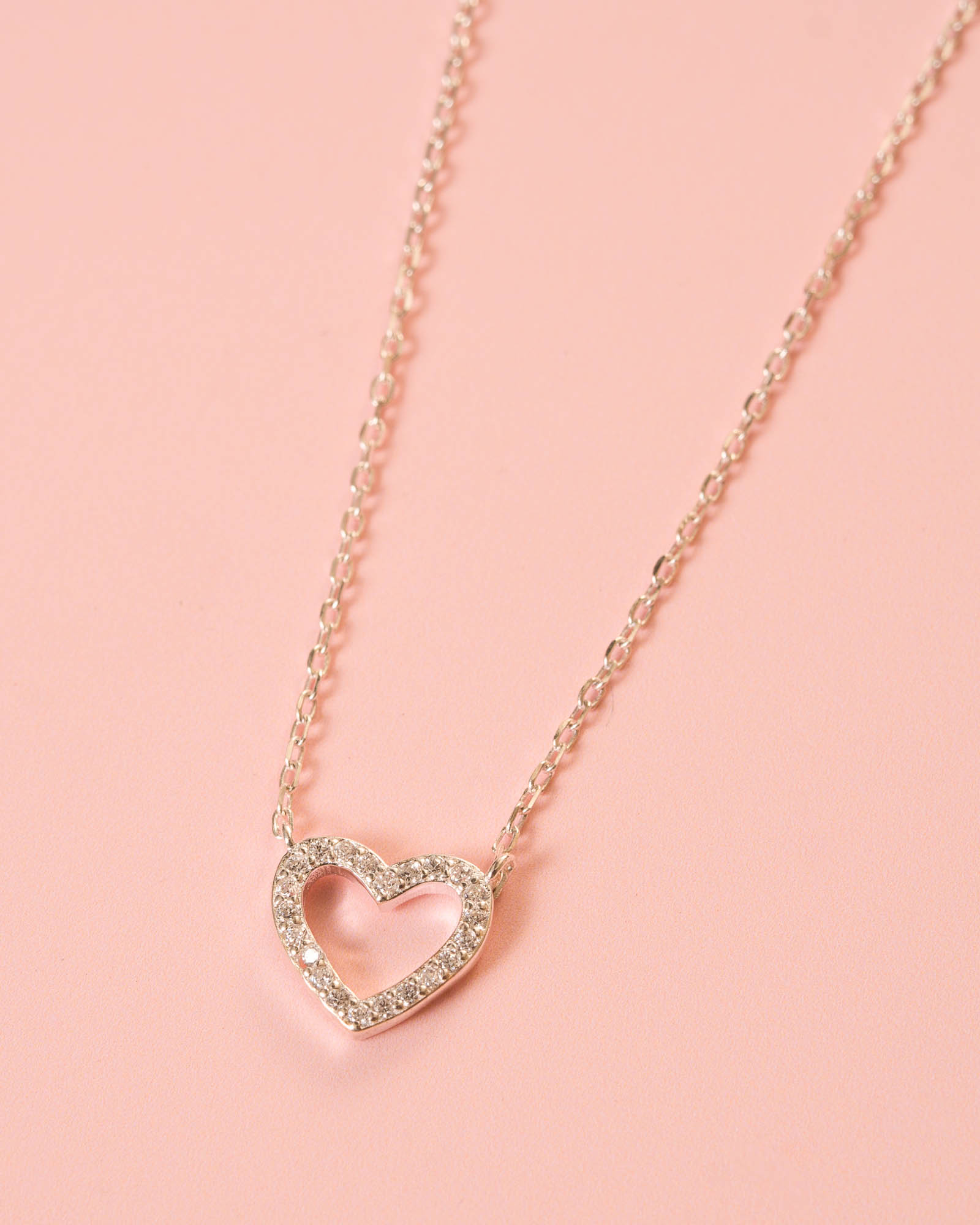 Cadena en plata de ley 925 con corazón central abierto y rodeado de pequeñas y delicadas circonitas blancas, que aportaron un toque sofisticado a todas tus combinaciones. Un modelo de cadena lleno de mensaje.