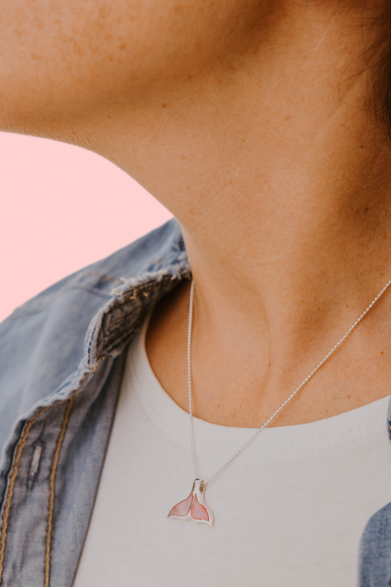 Colgante en plata de ley 925 cola ballena nácar rosa