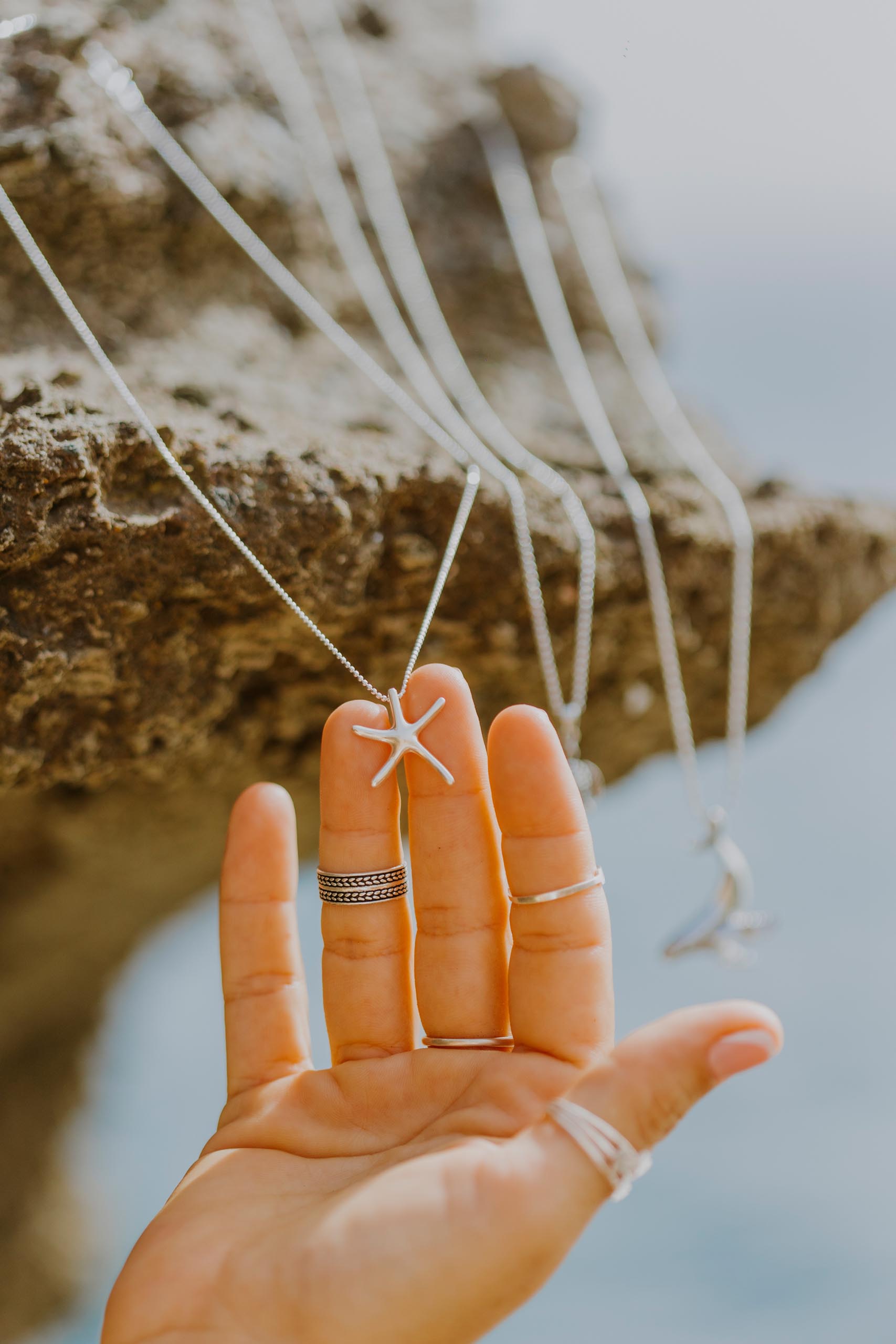 Su forma de cinco puntas evoca armonía, equilibrio y protección, como un amuleto que conecta al portador con la energía serena pero poderosa del océano. Al mismo tiempo, la estrella de mar simboliza la guía y la orientación, pues así como las estrellas del cielo iluminan los caminos de los viajeros, esta joya marina inspira a confiar en la intuición y seguir el rumbo propio.