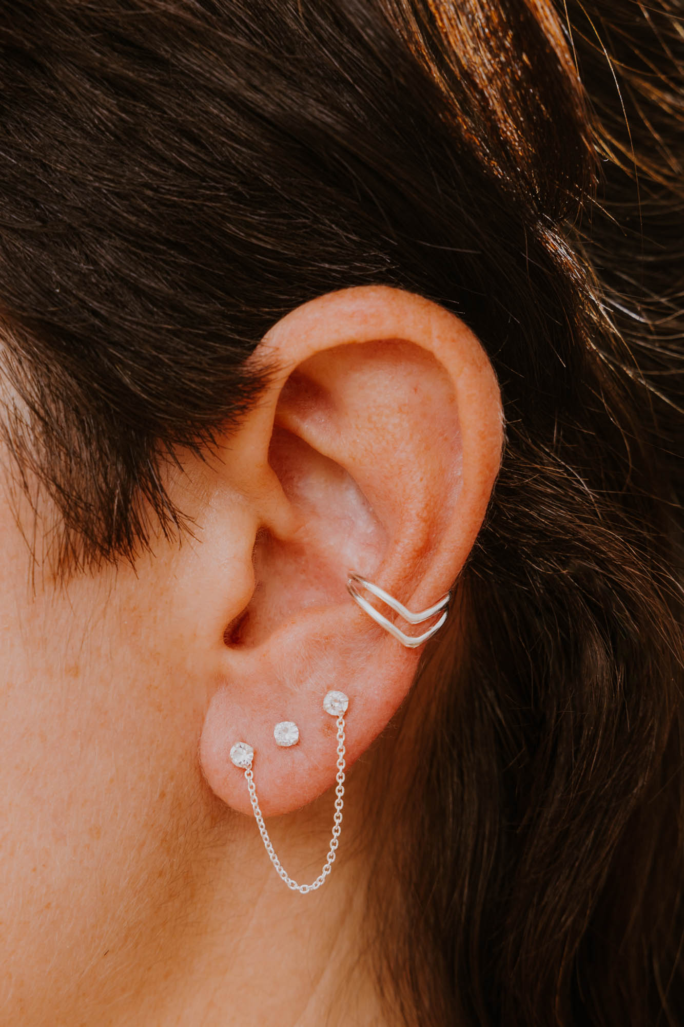 Este ear cuff de plata de ley con doble pico es el accesorio perfecto para quienes buscan un toque moderno y audaz en su estilo. Su diseño minimalista pero con carácter se adapta cómodamente a la oreja, sin necesidad de perforación, y añade un detalle único que resalta cualquier look. Ligero y resistente es ideal para usar solo o combinar con otros pendientes, creando un estilo lleno de personalidad. Un imprescindible para quienes aman la joyería que marca la diferencia.