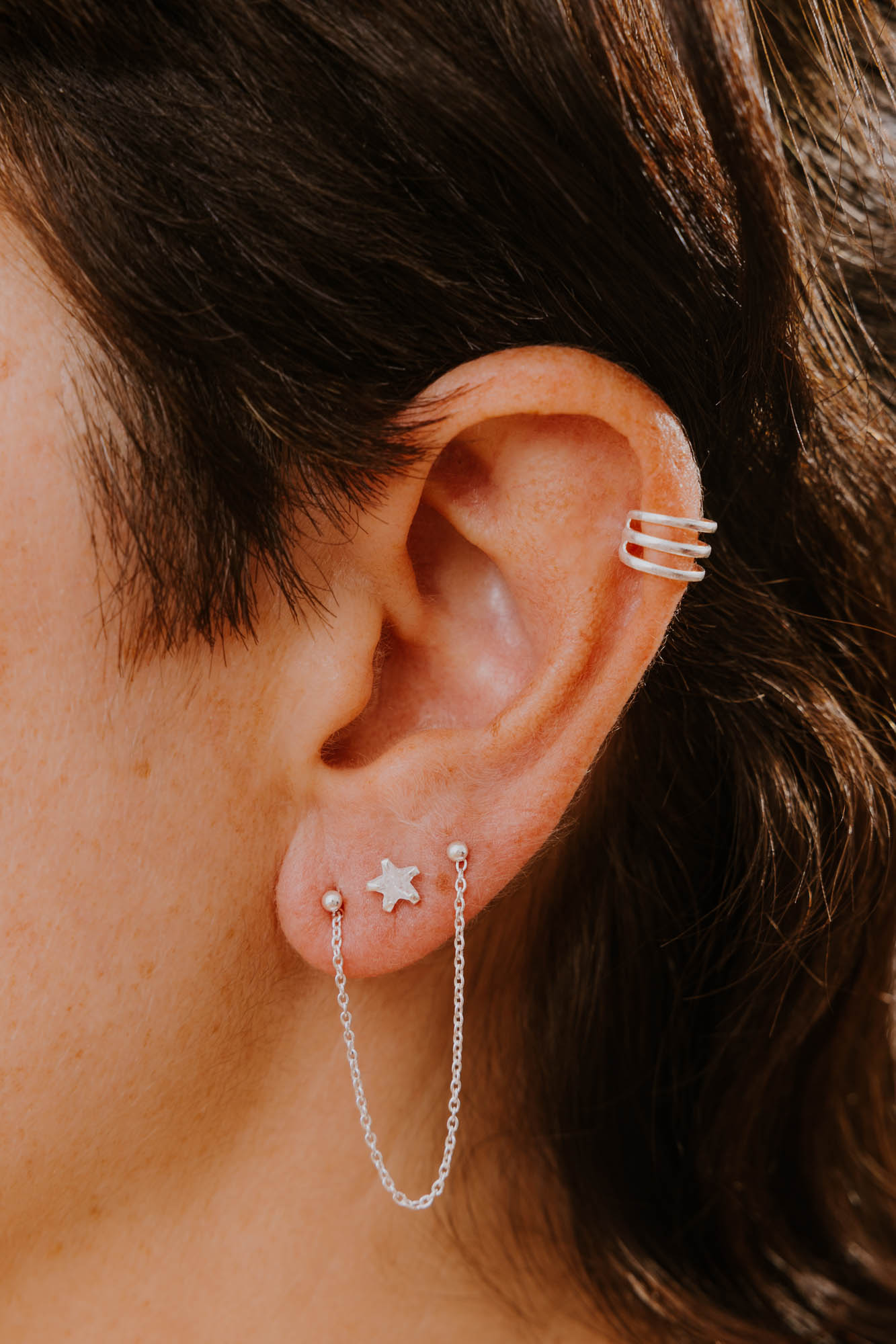 Minimalismo con carácter. Nuestro Ear Cuff de Triple Línea es una pieza versátil y sofisticada que destaca por su diseño limpio y contemporáneo. Con tres líneas paralelas perfectamente proporcionadas, este accesorio crea un efecto elegante y moderno sin necesidad de perforación. Diseñado para abrazar suavemente el borde de la oreja, este ear cuff se convierte en un acento sutil pero poderoso que eleva cualquier look. Su forma abierta y ligera permite ajustarlo fácilmente, ofreciendo comodidad y firmeza a lo largo del día. Pero su magia va más allá de la oreja: también puedes llevarlo en el cabello, entre trenzas, rastas o mechones, añadiendo un toque brillante, divertido y estilizado a tu peinado. Es una joya que se adapta a tu forma de expresión, ya sea en el lóbulo, en la parte superior de la oreja o entre tu melena. Fabricado en plata de ley 925, este accesorio no solo es resistente y duradero, sino que también brilla con una elegancia discreta. Ideal para quienes aman la estética minimalista, pero no convencional. Perfecto para uso diario o para dar un toque especial a tus outfits más creativos. Una joya que no necesita reglas, solo tu estilo. Se debe manipular para colocarlo, es decir, debes abrirlo suavemente, colocarlo y seguidamente presionar suavemente. Recuerda que puedes y debes mojar tus joyitas de plata para que luzcan siempre
