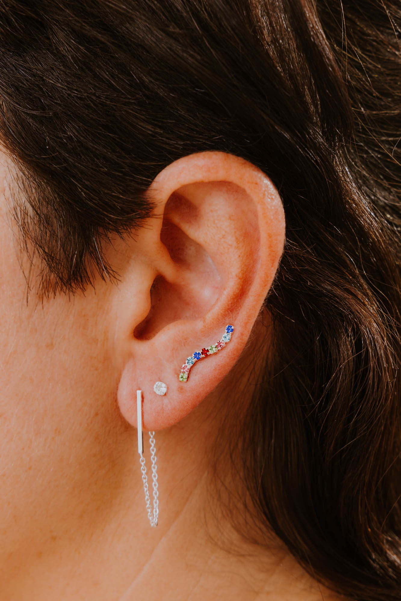 Elaborado en plata de ley 925, este pendiente minimalista destaca por su pureza y la elegancia de su única protagonista: una circonita redonda de corte brillante, engastada con precisión para capturar la luz. Perfecta para cualquier agujerito.