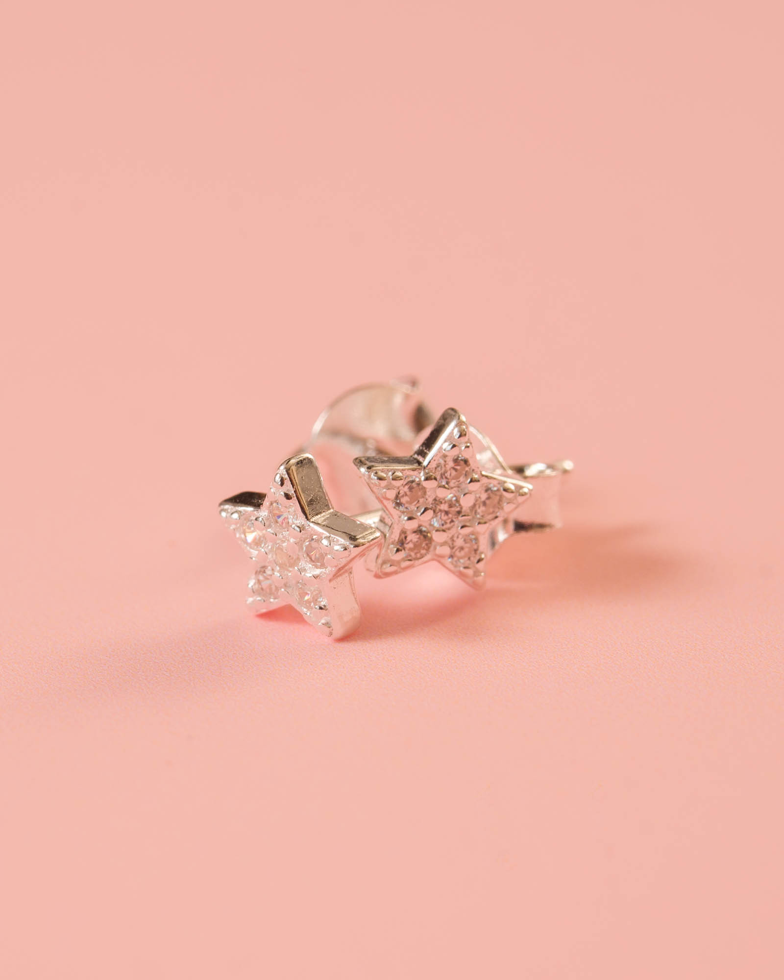 Pendiente en plata de ley 925 tipo mini estrella circonita blanca