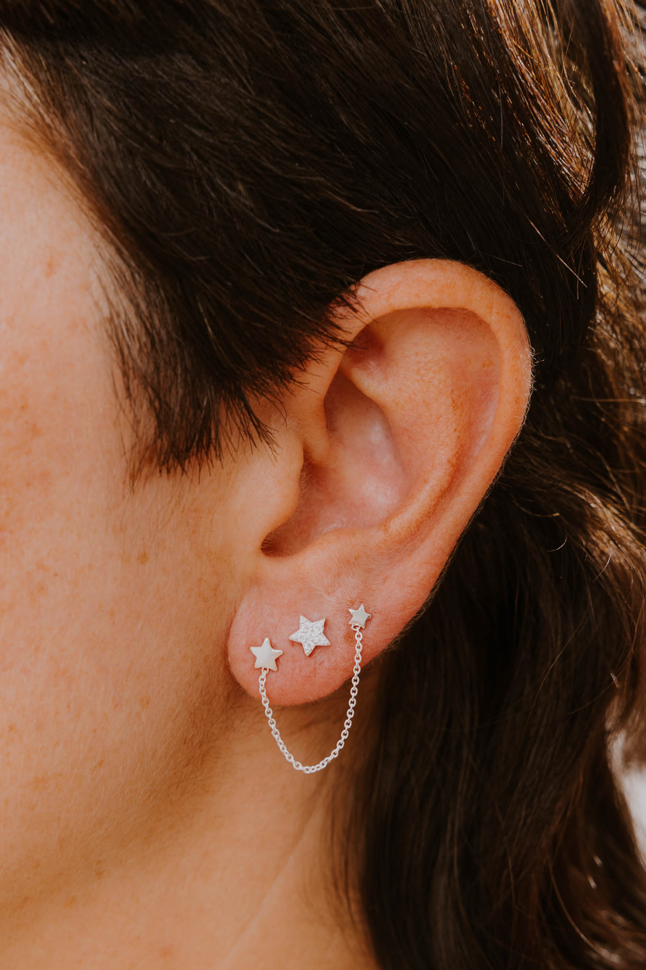 Este pendiente mini en forma de estrella es una joya que transmite delicadeza, equilibrio y un toque de magia estelar. Inspirado en la belleza del cielo nocturno, su diseño en plata de ley 925 adornado con pequeñas circonitas blancas en el interior. Perfecto para cualquier agujerito y tu día a día.