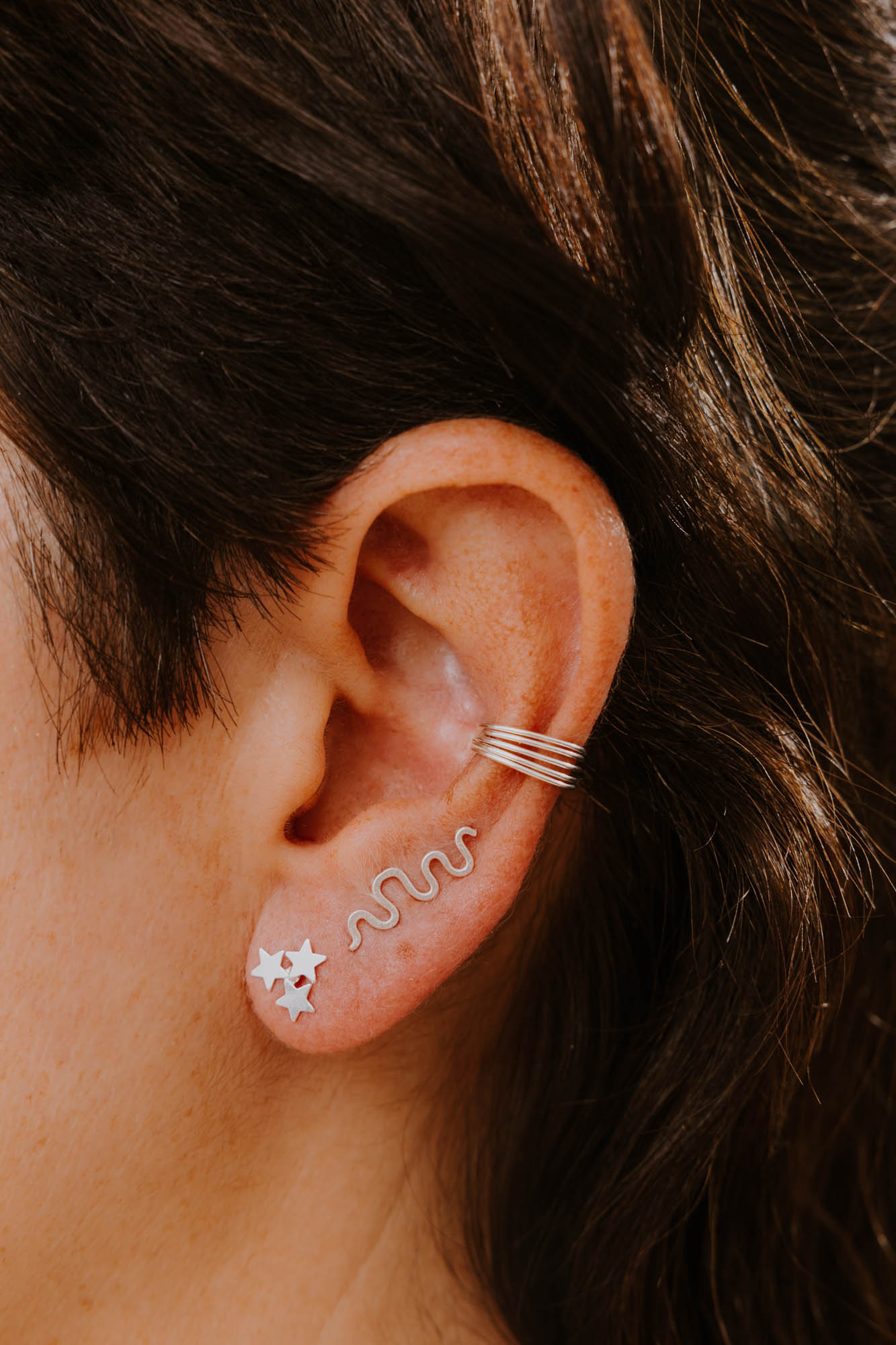 Brilla con la magia del universo en cada detalle. Inspirado en la belleza del cielo estrellado, nuestro pendiente mini de tres estrellas entrelazadas es una joya delicada que transmite luz y significado. Tres pequeñas estrellas se unen en un diseño armonioso, representando guía, sueños y conexión —un recordatorio de que incluso las luces más pequeñas pueden iluminar el camino. Fabricado en plata de ley 925, este pendiente combina calidad, brillo sutil y una estética minimalista perfecta para el día a día. Su tamaño reducido lo convierte en un accesorio discreto pero lleno de encanto, ideal para llevar solo o como parte de una combinación de pendientes. Es un diseño pensado para quienes creen en la magia de los pequeños detalles, en la energía del universo y en la belleza de lo simple. Su forma ligera y su acabado pulido lo hacen cómodo, versátil y atemporal. Este pendiente es hipoalergénico, duradero y resistente al desgaste diario, perfecto para acompañarte en cada aventura. Un regalo con significado o un detalle especial para ti, que te conecta con tu esencia más brillante.