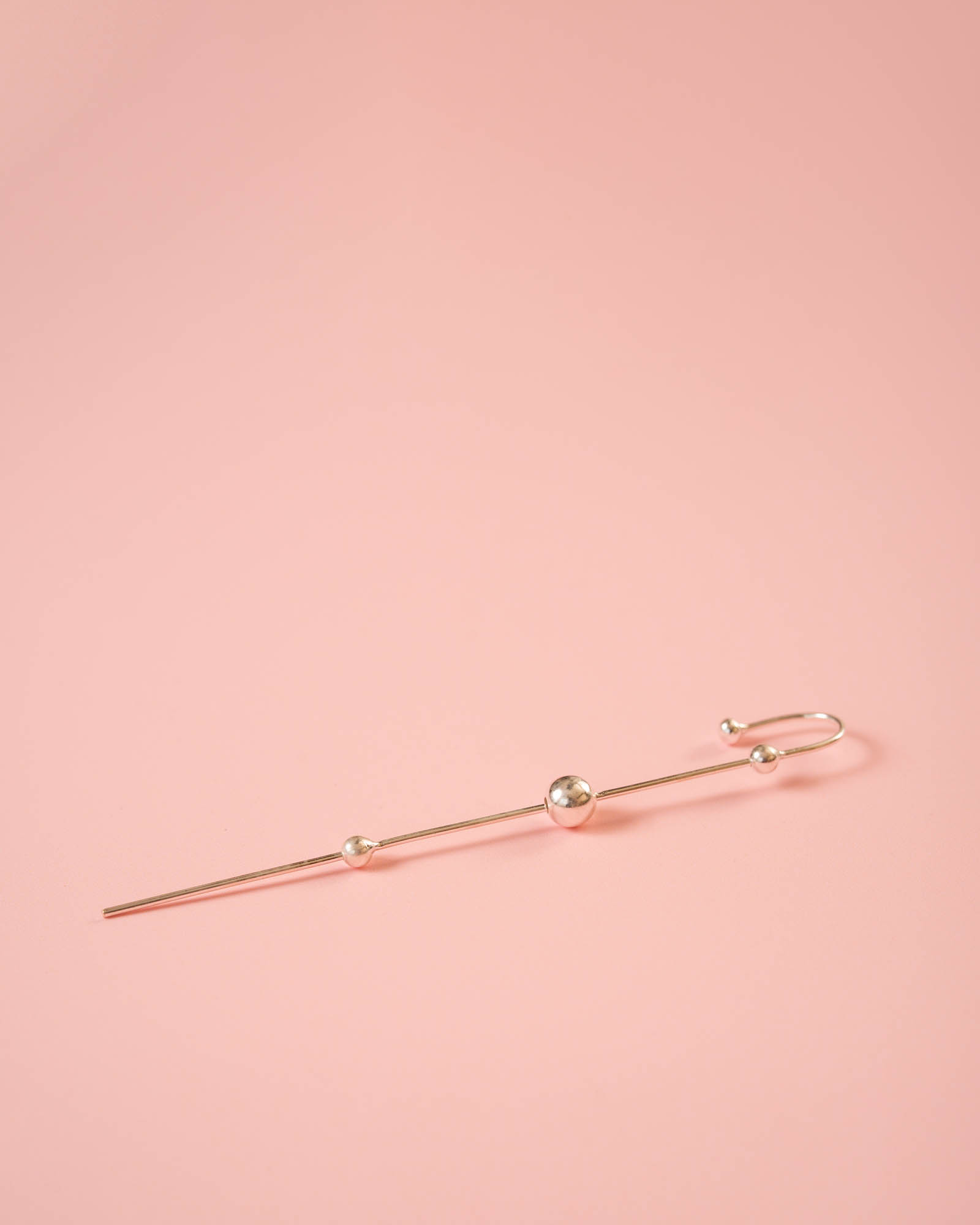 Pendiente en plata de ley 925 en forma de palo con tres bolas. Con una longitud de 10cm. ¿Cómo ponértelo? Introduce en tú primer agujero la parte inferior (la que es totalmente recta) y sujetas por la parte superior de la oreja (la forma curva) y presionas levemente para mantenerlo, ahora a GOZARLO!!!