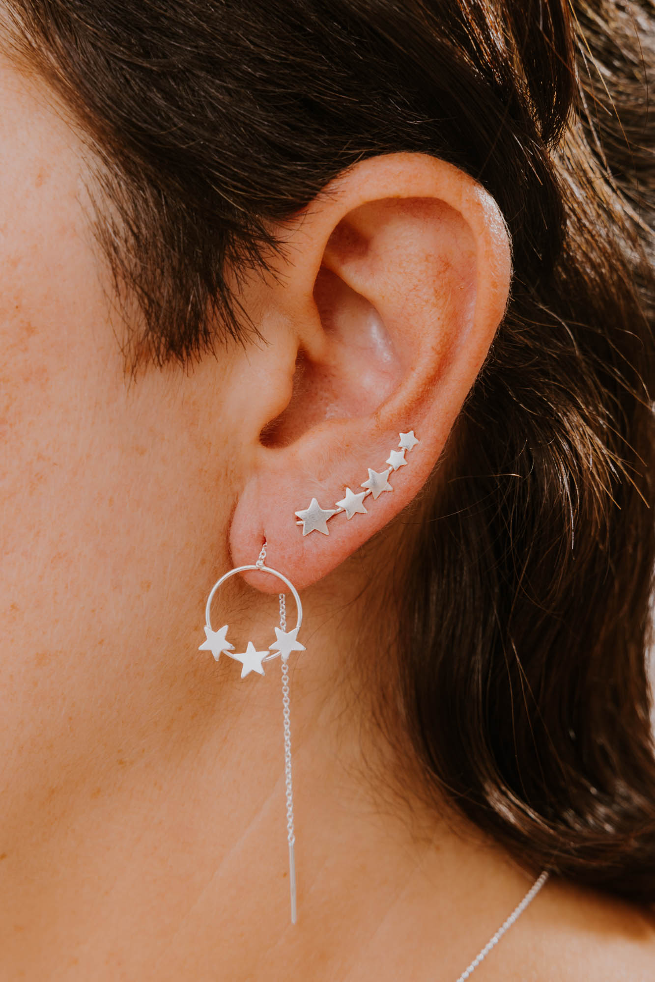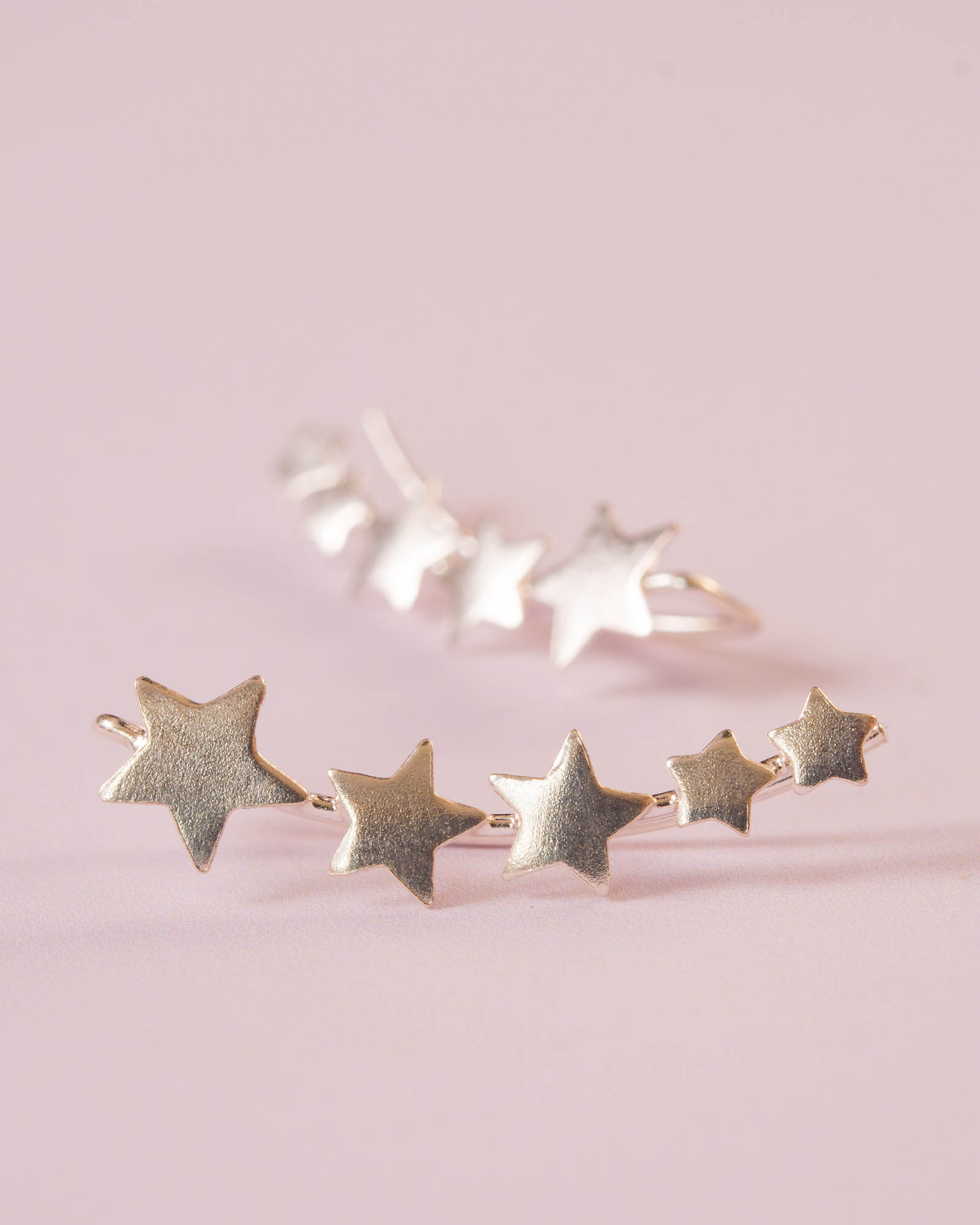 Pendiente trepador en plata de ley 925 con diseño de estrellas en ascenso que van de mayor a menor creando un diseño sofisticado y vibrante. Perfecto para tu día a día.