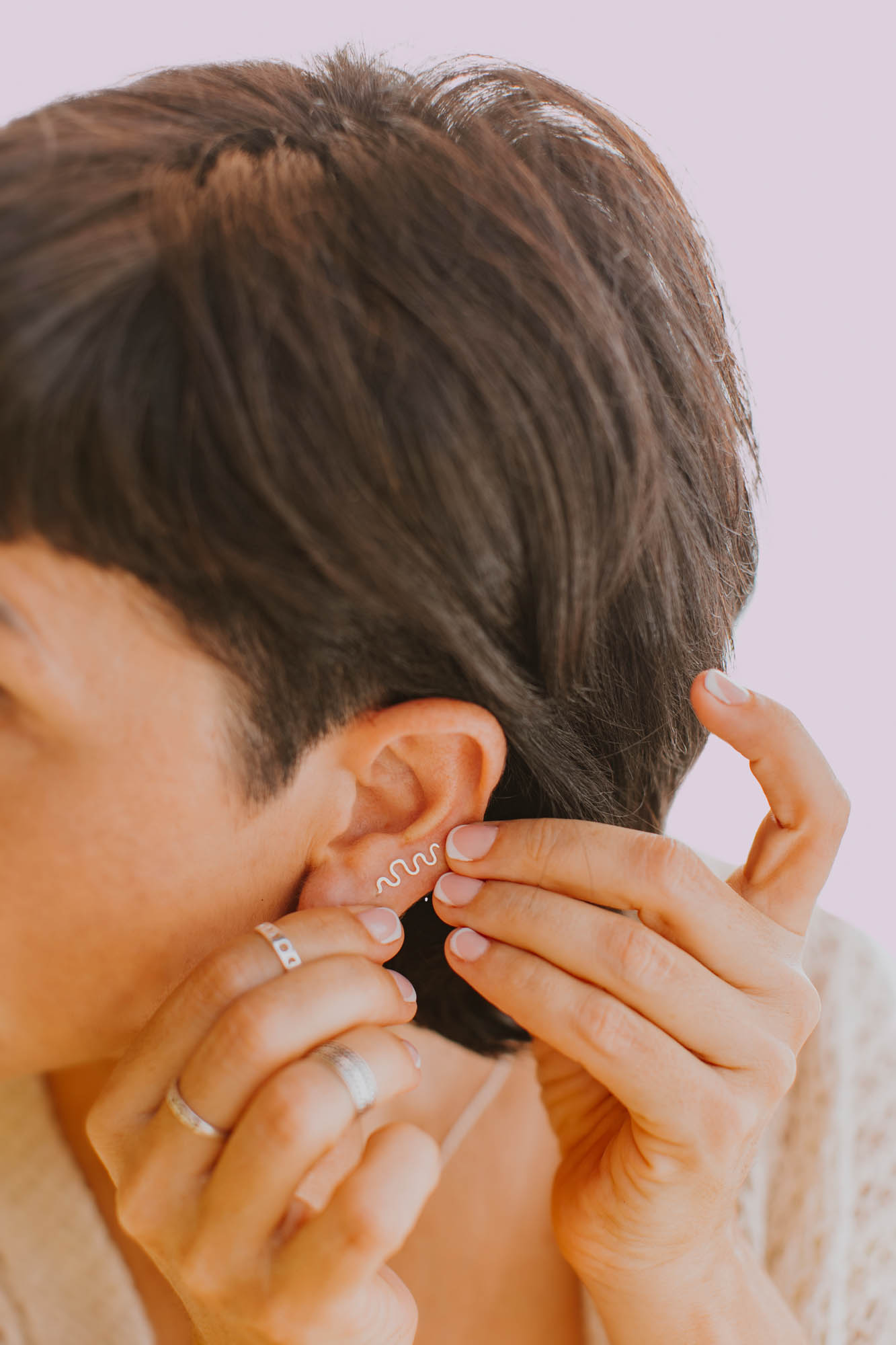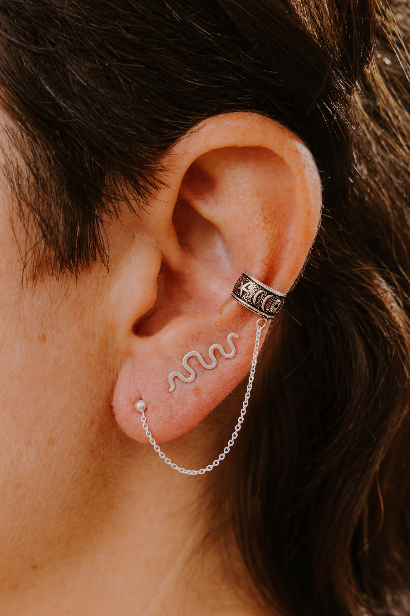 Combínalo con: Joyas de texturas naturales. Levalo solo o complementa con ear curffs o pendientes minis, este modelo siempre es acierto.