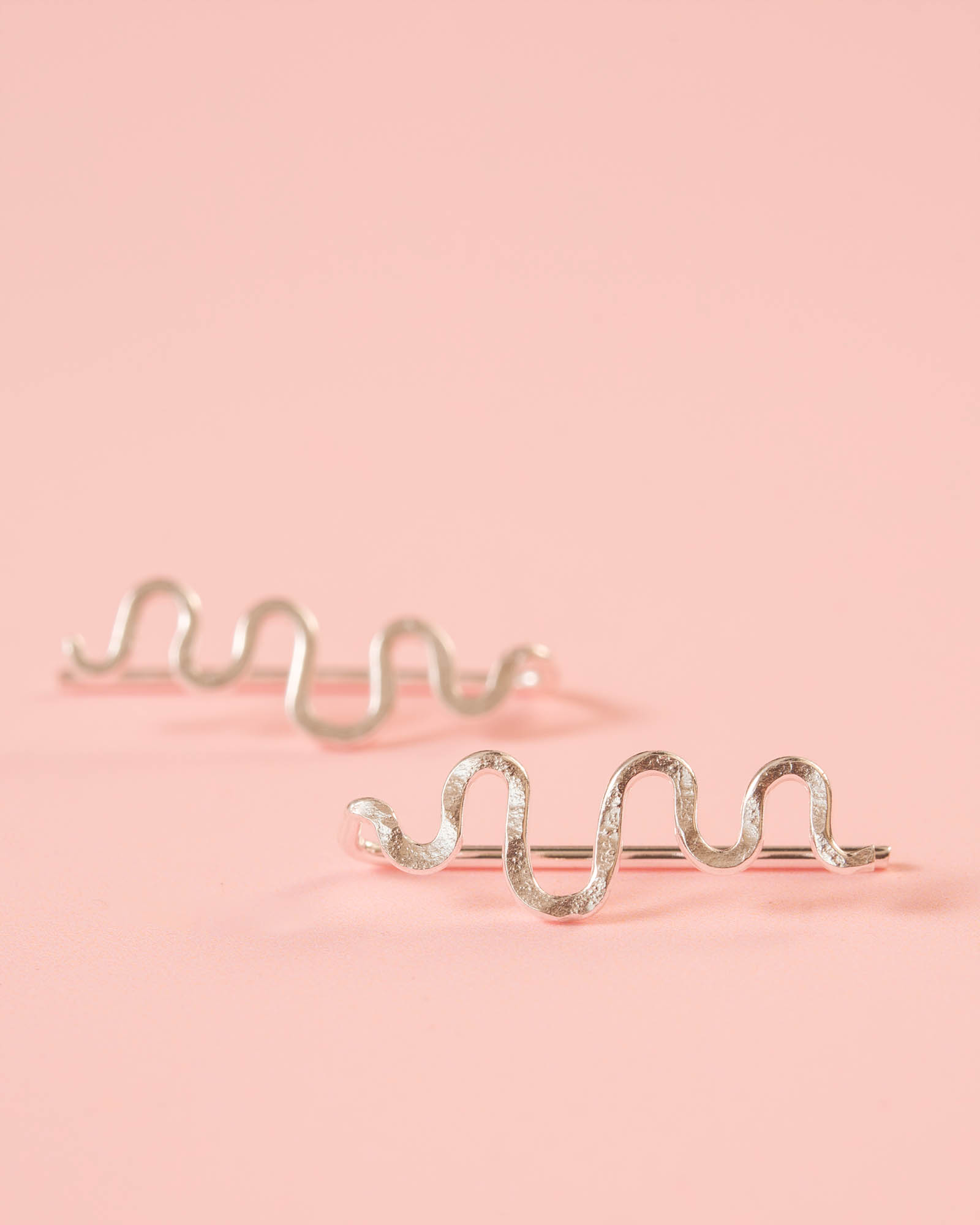 Pendiente trepador de plata de ley 925 con forma ondulada y acabado martillado. Textura opaca, diseño natural y comodísimo.